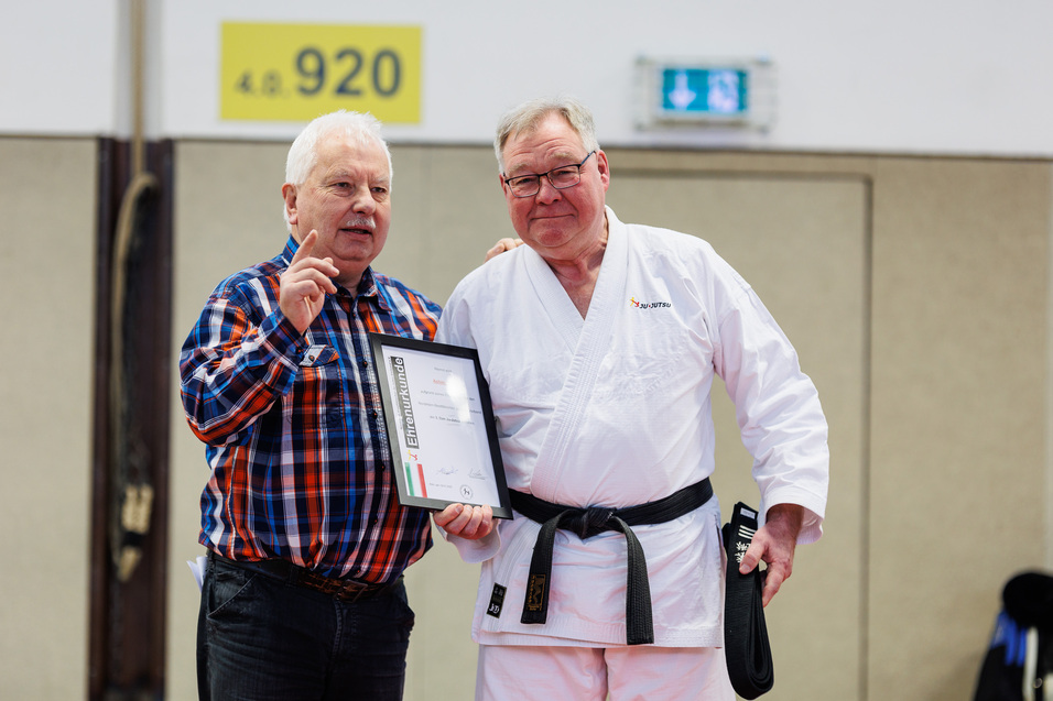 Der Präsident würdigte sein langjähriges Engagement im Ju-Jutsu als Sportler, als Trainer, im Vereinsvorstand und im Verband.
