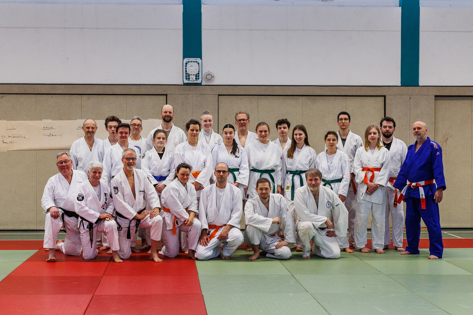 Es war kein normaler Sonntag. Der JSV Lippstadt konnte am 19.01.2025 einen Ju-Jutsu Landeslehrgang zum Thema Würfe ausrichten. Die Matte war ausgelegt und Trainer Achim Baum war mit Formalien für die angereisten Sportler beschäftigt. Nicht nur der Referent Ulrich Petrias 6. Dan war schon da, sondern auch der Vereinsvorsitzende und der Ehrenrat des JSV Lippstadt. Auch als der Präsidenten des Nordrhein-Westfälischen Ju-Jutsu Verbands, Werner Dermann 7. Dan „auf seiner Reise einen Zwischenstopp einlegte“ und hereinschaute, schöpfte Achim Baum noch keinen Verdacht.