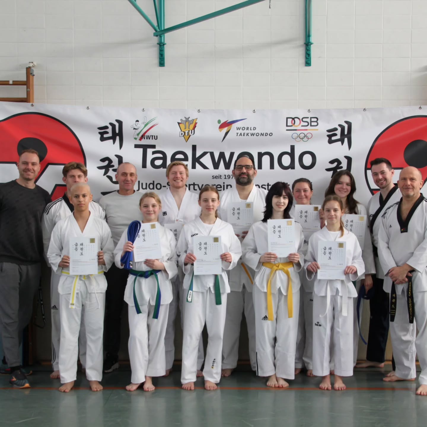Wir freuen uns 9 Mitgliedern unserer Taekwondo-Abteilung zur bestandenen Gürtelprüfung gratulieren zu können. 😊🥳