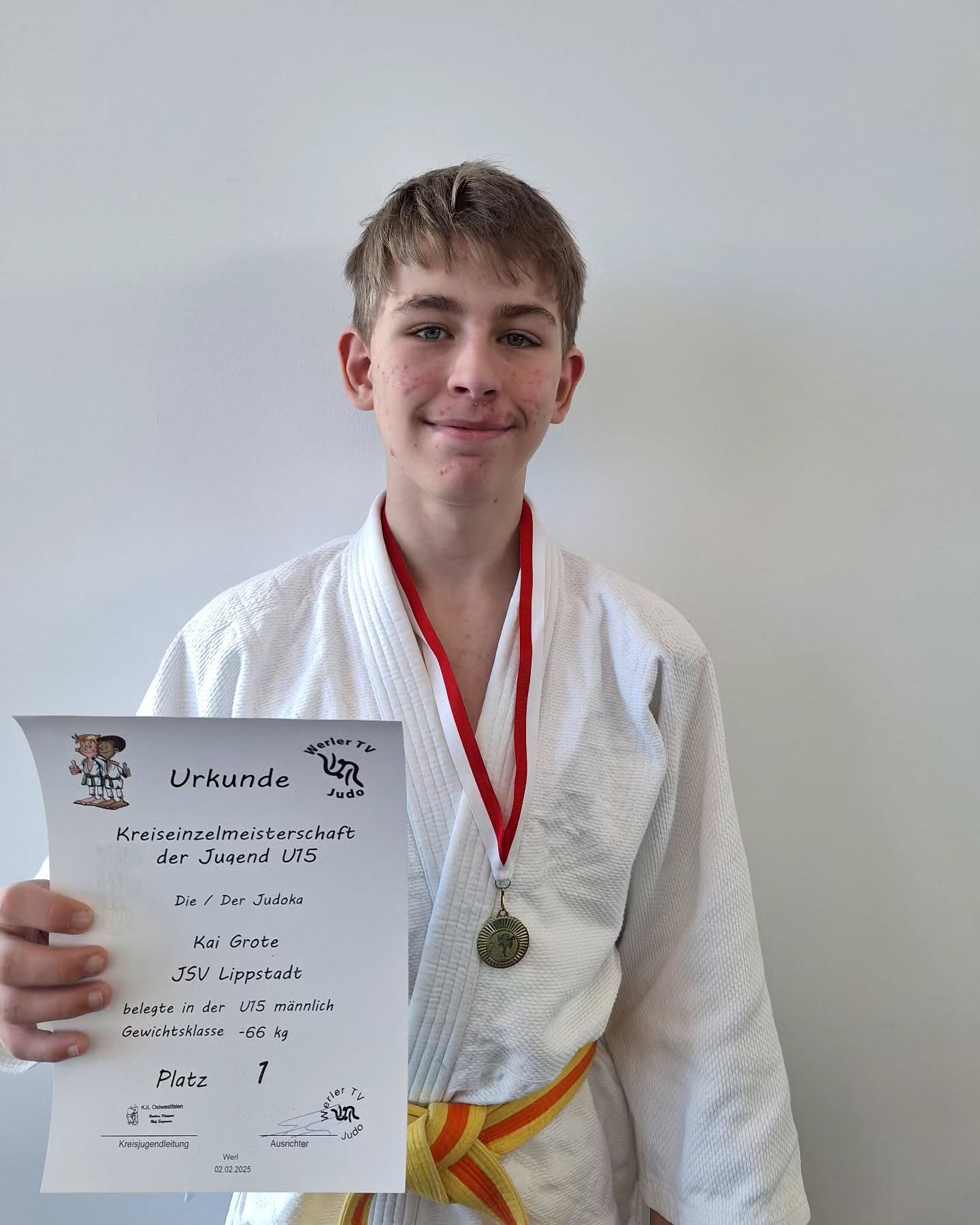 Unser junger Judoka hat sich bei der Kreiseinzelmeisterschaft U15 in seiner Gewichtsklasse den 1. Platz erkämpft und sich somit nicht nur den Titel des Kreismeisters gesichert, sondern auch für die Bezirkseinzelmeisterschaften qualifiziert. 🥋