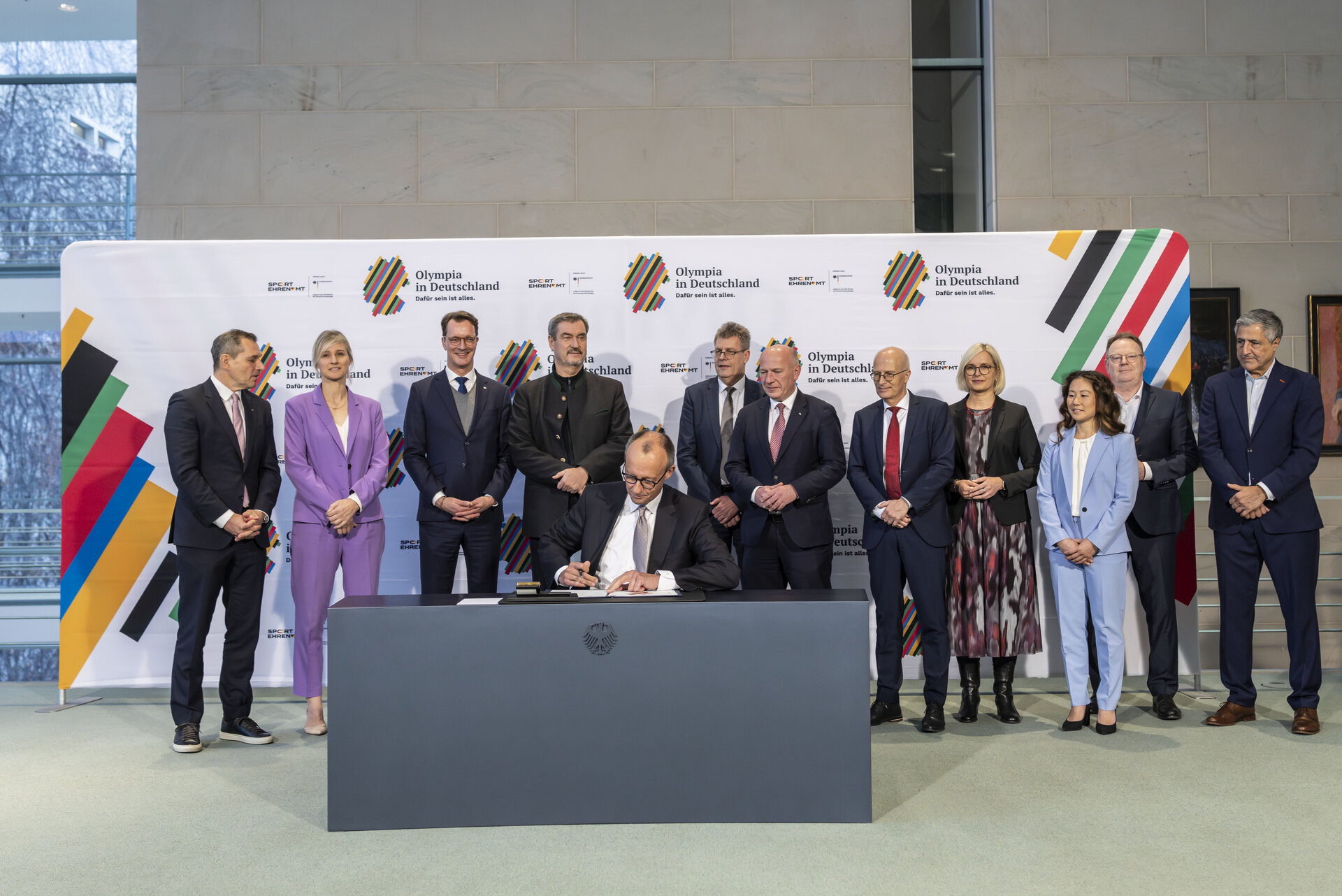 Dem US-amerikanischen Automobilpionier Henry Ford wird folgendes Zitat zugeschrieben: „Zusammenkommen ist ein Anfang; zusammenbleiben ist ein Fortschritt; zusammenarbeiten ist ein Erfolg.“ Am Donnerstagnachmittag haben Vertreter*innen aus Bundes- und Landespolitik sowie dem organisierten Sport ihre Zusammenarbeit auf dem Weg zu einer erfolgreichen Bewerbung um die Ausrichtung Olympischer und Paralympischer Spiele in Deutschland auf ein neues Fundament gehoben. In der Kanzlergalerie des Bundeskanzleramtes in Berlin setzte Friedrich Merz (CDU) als letzter von sieben Zeichnenden seinen Namenszug unter eine politische Vereinbarung zur deutschen Bewerbung.